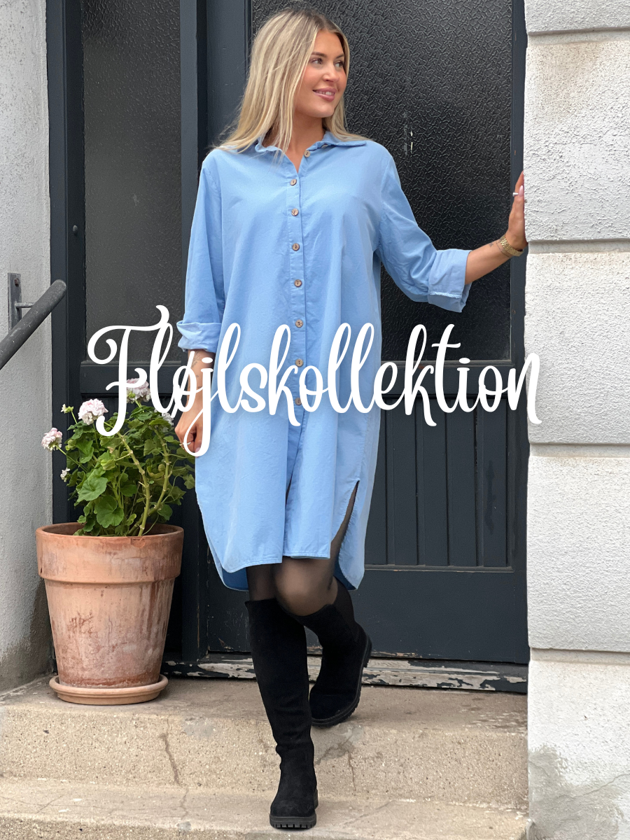 Forudbestil uge 6 Danica fløjls kjole-tunika med knapstolpe light jeans LikeLondon