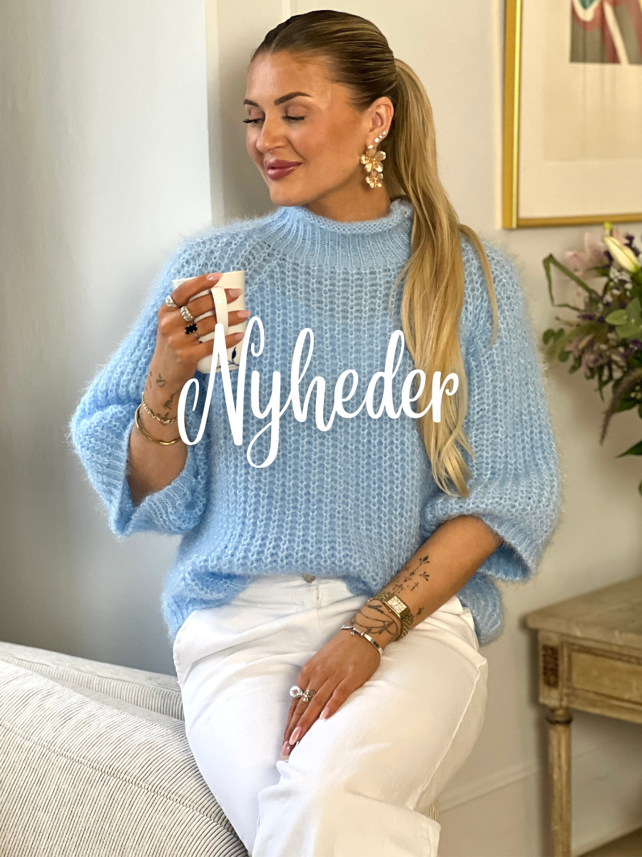 Donna strik med turtleneck og trekvart ærmer lysblå LikeLondon
